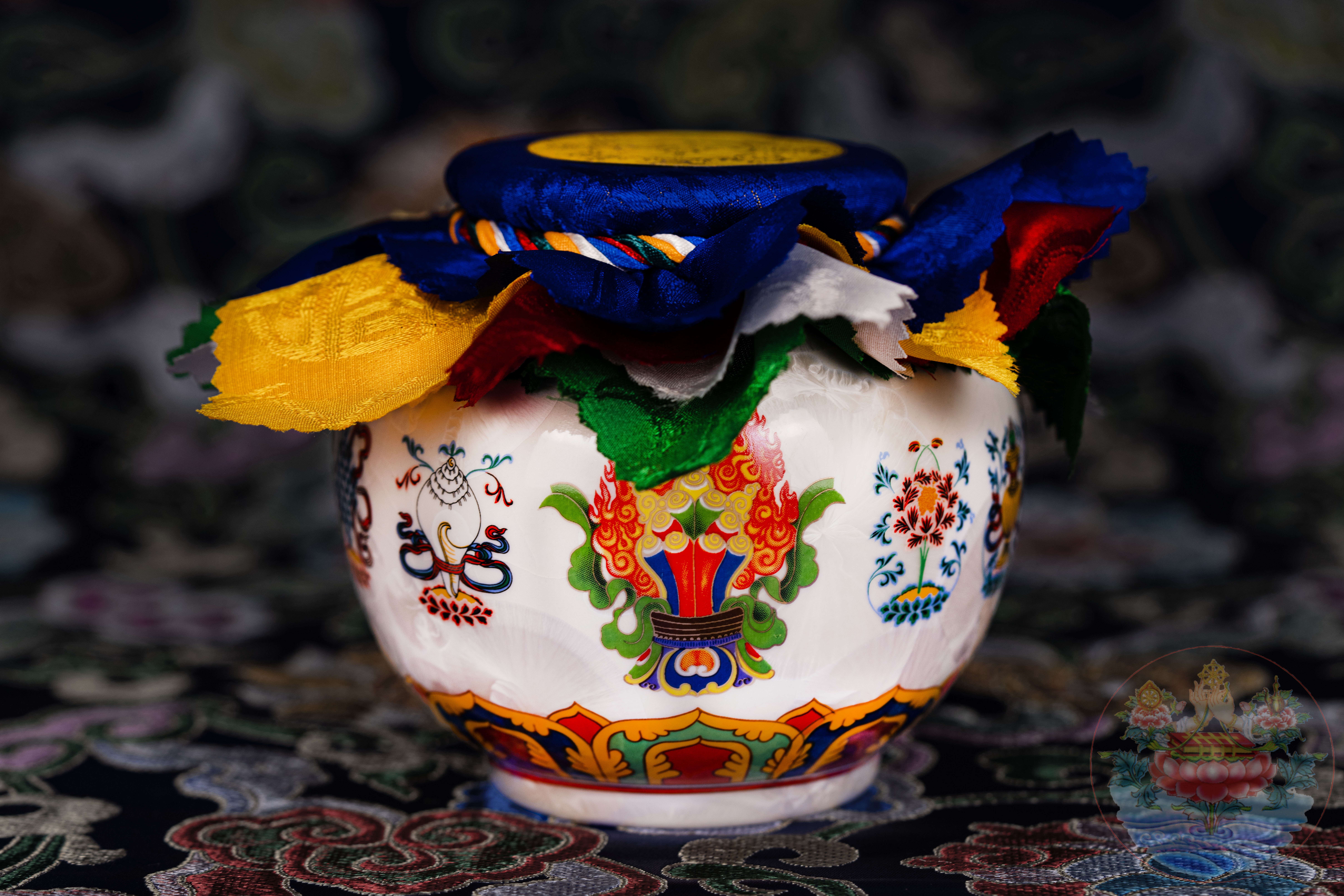 流通處依循蓮師巖傳法寶藏,消災延壽藥師八佛寶瓶製作法軌,非常如法裝臟極難得數十種西藏、印度、不丹大佛寺,賜贈佛學會極珍貴佛寶舍利寶丸,及息除防禦一切災障和障阻身心佛智壽命,具大加持保護力法寶甘露增益福物、本尊法相經咒壇城護輪等圓滿,更經傳法上師及仁波切,領堪布、洛本喇嘛僧,如法本尊法軌清淨加持,祈請本尊融入圓滿供各地修佛習密信眾請供。福報寶得藥師八佛法寶瓶,虔誠恭敬供奉於佛堂、壇城、辦公室、醫院、診所及家宅清潔高處,寶瓶如同藥師八佛壇城無二無別,誠向寶瓶香花、油燈、寶蓋、幢幡、薰香供養,得悲願藥師八佛及十二藥叉大將及百萬護法眷大力眷顧與庇護,能調和地、水、火、風種種傷害眾生災劫障難不生,更可防禦傷害眾生2800種魔障,和未到壽盡之18種夭折橫禍,特別是現今末法時代之種種惡疾傳染病毒皆不受侵害感染,患病者疾苦速得痊癒,身體康健光彩、身心平和、無病煩惱、壽命增延,命終時不會有恐懼之痛苦,順利生佛淨土。寶瓶供奉所在之地和平、吉祥、家庭和樂、事業旺盛資財廣進,福報見到寶瓶如見藥師八佛般也能消除無量罪業災障,得到解脫之種子功德廣大實無法詳盡宣說。