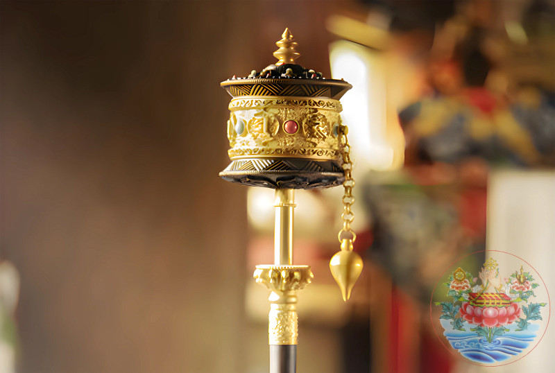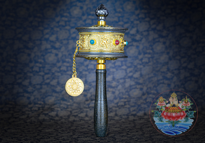 126520 遍大悲觀音六字大明純銅經筒檀木柄大型 轉經輪
